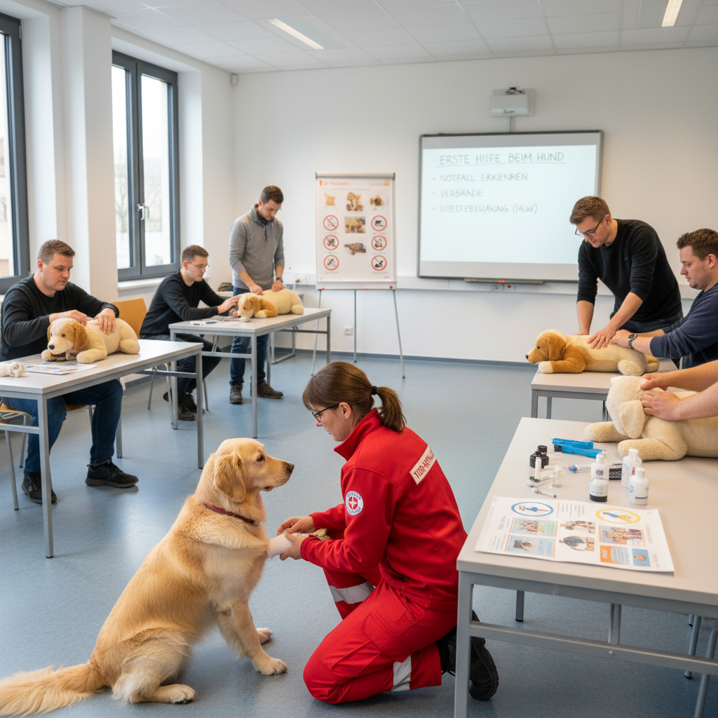Dieser Kurs vermittelt essenzielle Fähigkeiten, um im Notfall bei Deinem Hund sicher und schnell zu handeln.